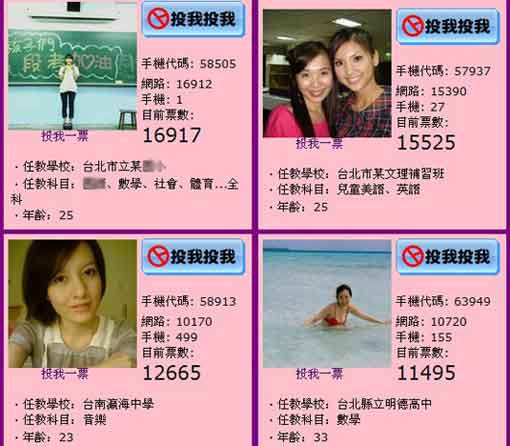 报道称,昨日,以5000多票暂居第一的李依文,专长为街舞和流行MV舞,在金门大学热舞社、舞蹈教室教舞蹈;自彰化师范大学信息管理系毕业的李依文因对舞蹈有兴趣而选择教舞,外表亮丽的她笑说,有些男生还会借口学舞接近她。网友John留言:“有如此吸引力的老师,应该没有学生会打瞌睡了。”网友momo则说:“好想要上你的课喔!”