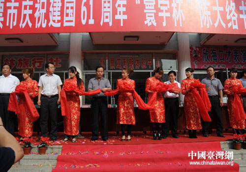 中国台湾网9月27日北票消息 日前,为庆祝建国61周年,辽宁北票市举办“寰宇杯”陈大络书法展。出自台湾著名书法大师陈大络之手的“江山一统”等书法作品充分体现出两岸同根、同源,都是中华民族炎黄子孙的情怀。