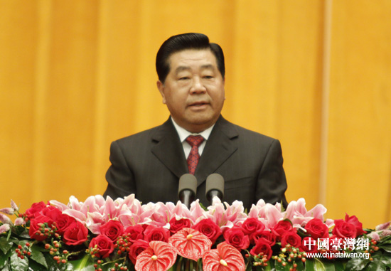 中共中央政治局常委、全国政协主席贾庆林在招待会上致辞。(中国台湾网 钟宝华 摄)