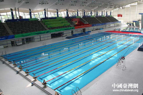 佛山世纪莲体育中心游泳跳水馆内部。(中国台湾网 赵辉 摄)