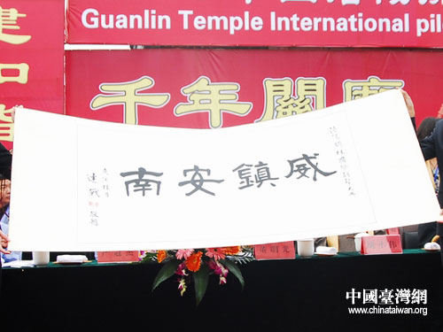 中国国民党荣誉主席连战贺词:威镇安南。图片来源:洛阳市台办