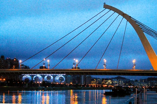 大直桥下长36米的户外数字水幕,则用计算机控制电磁阀产生间歇喷水,秀出各种文字及图像,像一幅“水幕动画”,已打算申请吉尼斯世界纪录。大佳码头“睡莲光雕”则会随涨、退潮开合,这两景点都要开幕后才看得到。(中国台湾网 孙金诚)