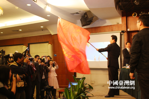 中国台湾网22日济南消息 “聚焦山东半岛蓝色经济区——第六届中国网络媒体山东行”活动,22日在济南市启动。中共山东省委常委、宣传部长李群在启动仪式上致辞并为采访团授旗。