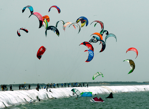 第二届中国潍坊滨海国际风筝冲浪邀请赛比赛场景。