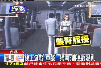 中国台湾网11月1日消息 据台湾TVBS电视台报道,台湾最近出现一款内容极为“重口味”的在线游戏,玩家若要增加经验值,须对游戏中的女性做出袭胸、袭臀、强吻等动作。台湾妇女团体近日抨击该款游戏,认为它将导致青少年的“道德观混乱”。