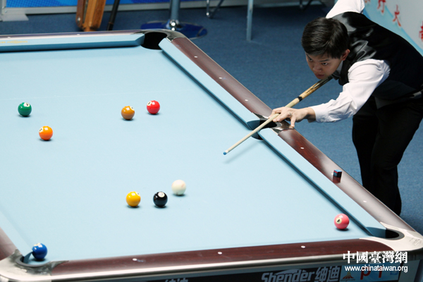 郭柏成瞄准“黑八”,只要攻入,即赢得比赛。(中国台湾网 钟宝华 摄)