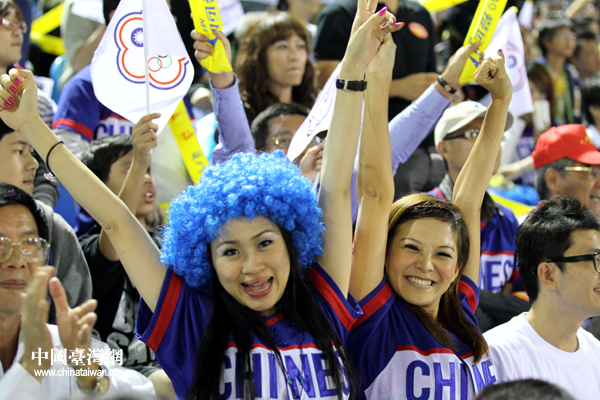 中国台湾网11月19日广州消息 18日晚,广州亚运会一场棒球半决赛在中华台北队和日本队之间激烈进行 ,不少从台湾赶过来的棒球迷占领大部分看台,群情激昂,高喊口号,挥动旗帜,为台湾棒球健儿加油。中华台北棒球队不负众望,最终以4:3拿下日本队,挺进决赛。(记者 钟宝华)