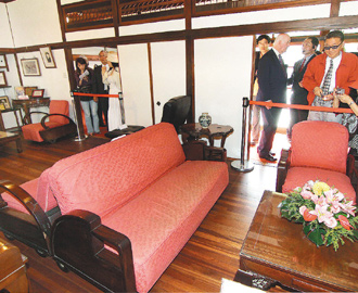 昨天,上百名孙立人的老部属争睹故居风采,怀念老长官,参观民众络绎不绝,一名男孩告诉同伴:“听说这以前是一个很伟大的人住的房子。”
