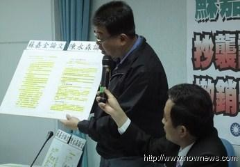 国民党籍“立委”邱毅22日上午爆料指民进党台中市长候选人苏嘉全的硕士论文涉嫌抄袭。(图片来源:台湾“今日新闻网” 陈思颖摄)