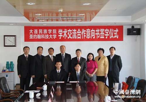 大连民族学院与台湾圣约翰科技大学签署学术交流合作意向书(图片来源:大连市台办)
