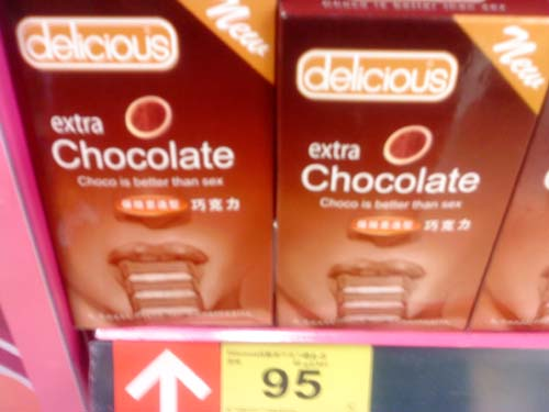 中国台湾网12月1日消息 据台湾“今日新闻网”报道,台湾一家适合全家大小一起去的家乐福超市中,摆放着一件件外型如同壮阳药、丰胸丸等令人脸红心跳的创意巧克力。这些巧克力的外包装都有明显的内衣、内裤图案,“重点部位”还被加以凸显,令人很难不做其它联想。