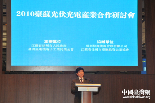本次研讨会是在两岸经济合作框架协议(ECFA)签署并生效、台湾推动六大新兴产业、大陆实施“十二五”规划加快培育和发展七大战略性新兴产业的大背景下召开的,是继去年“台湾江苏周”期间举办“2009年台苏光伏光电产业合作研讨会”之后,再度在台北举办的两岸光伏光电产业的盛会。研讨会由徐州市政府和台湾区电机电子工业同业公会主办,保利协鑫能源控股有限公司和徐州市台胞投资企业协会协办。
