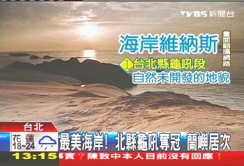 中国台湾网12月11日消息 据台湾TVBS电视台报道,近日,台当局“内政部营建署”举办“最美海岸线”的票选活动,台北县万里乡的龟吼路段,有多处海岸景点,并以地貌景观和自然特色,拿下最佳维纳斯海岸线的第1名。台东县兰屿,以及屏东出风鼻段的海岸线,也都因为丰富的动植物生态景观,分居2、3名。