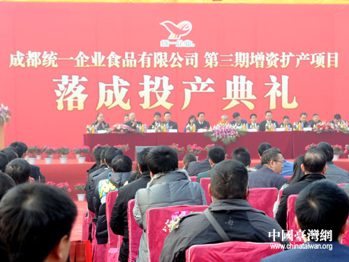 成都统一企业食品有限公司第三期增资扩产项目落成投产典礼现场。图片来源:四川省台办