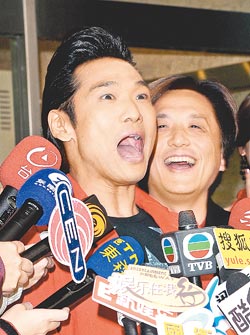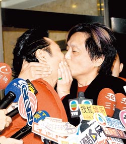 姚凤群热情回吻多年好友杜德伟(图),把原本只亲脸颊的杜德伟吓到张大嘴。图片来源:台湾《中国时报》