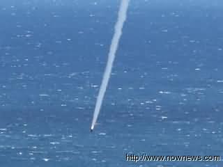 台军导弹从发射箱射出后由于燃烧不完全,直接坠落海面。图片来源:台湾“今日新闻网”