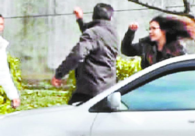 张母姜柔伊(中)披头散发抓着张韶涵友人不放,张韶涵外婆(右)在旁看热闹。来源:台湾媒体