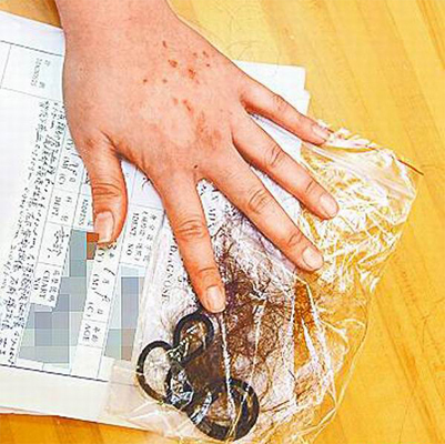 张韶涵友人称手上的伤是被张韶涵外婆踩的,头发则是被张母扯下来的。来源:台湾媒体