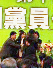 中国台湾网1月22日消息 据台湾“今日新闻网”报道,民进党22日召开临时全台湾民进党代表大会,讨论党内2012年台湾地区领导人与“立委”提名办法。民进党主席蔡英文才刚上台致词,便有民进党代表冲上台呛声,扯掉麦克风。