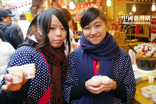 与笔者相谈甚欢,两位就读某大学广播电视系的俏姑娘。 刻意回避镜头,想必曾有许多采访者找上她吧。 在年货大街打工,一忙就是大半个月,维持亲切笑容,真的是一种专业! 浏览更多台湾新闻