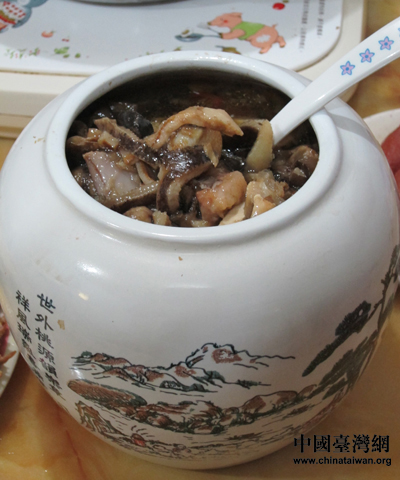佛跳墙。闽菜系的传统佳肴。装于圆坛中,引其谐音、“团圆”之意。