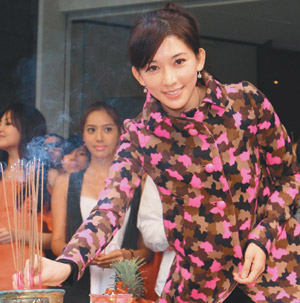 台湾模特公司凯渥上午举行开工团拜,林志玲特地出席开工仪式。图片来源:台湾《联合报》