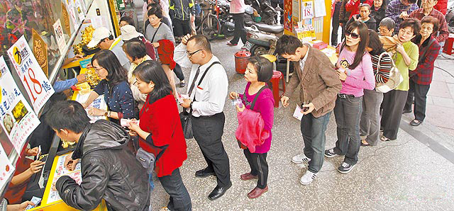 台湾大乐透头奖总彩金创下历史新高,吸引许多台湾民众买乐透试试手气。图片来源:台湾媒体
