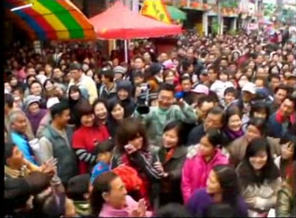 昨天彰化县鹿港城隍庙人潮不断,庙内外更是挤的水泄不通且寸步难移,重头戏是下午2时登场的“男丁抛绣球找女情人”活动。29岁的帅哥潘冠志,第一次所抛出的绣球,是被现场一名妈妈手上抱的3岁小女孩接到。因小女孩的妈妈说:“(年龄)差太多岁了,不行!”又因小女孩也不愿意上台而作罢。