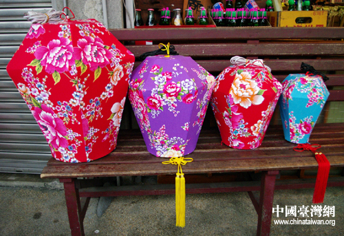 台湾花布与天灯结合,成为漂亮的灯饰,颇受民众青睐。