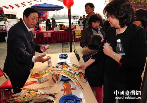 台湾民众对北京风筝充满兴趣,现场向老师请教技巧(图片来源:北京市台办)