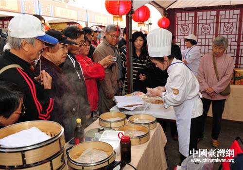 都一处烧麦展位前人头攒动,地道的北京特色吃食让台湾民众赞不绝口(图片来源:北京市台办)