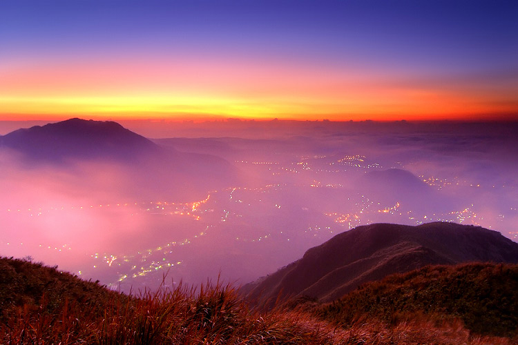 台北市附近大屯山火山群美丽的晚景。资料图