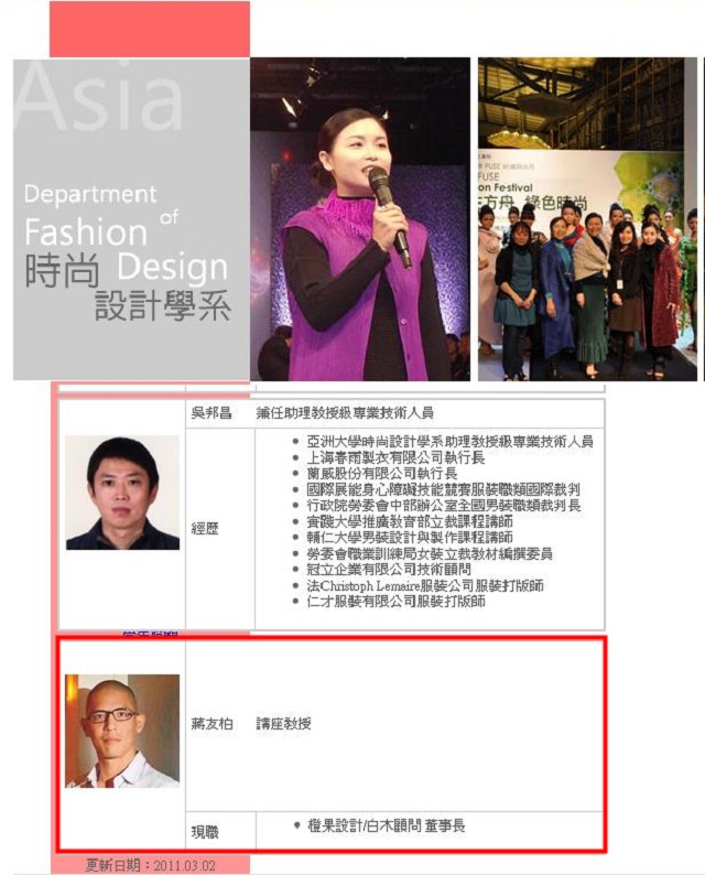 台湾亚洲大学网站上已更新蒋友柏为新任客座教授(红框处)。翻摄网络