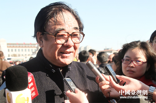 3月3日,全国政协十一届四次会议在北京人民大会堂开幕。图为全国政协委员金铁霖接受媒体采访。(中国台湾网 陈佳慧 摄)
