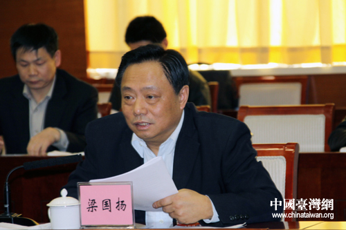 十一届全国人大四次会议台湾代表团团长梁国扬发言。(中国台湾网 王伟 摄)