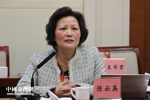 台籍代表陈云英在下午的全体会议上发言。(中国台湾网 王伟 摄)