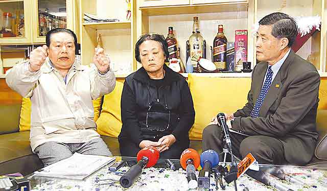 外传高华柱(右)因健康问题,再次向马英九请辞。图为高向江国庆家属道歉。图片来源:台湾媒体