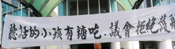 不过就在会议进行的同时,台南市无党籍议员曾顺良带领群众头绑抗议布条,在议会门口呼口号。曾顺良痛批赖清德让议会污名化,要求与市长公开辩论。有民众提着铁笼,内装2只白鸡,曾顺良同民众一同到庙里斩鸡头发誓,“任内绝不接受任何议员提出建议权”,以示清白。(中国台湾网 冯存健)