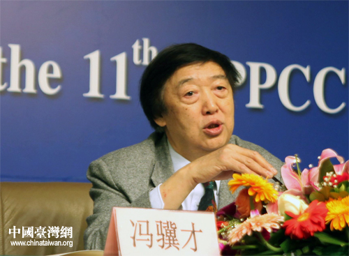 3月10日上午,“全国政协委员谈文化建设”记者会在北京梅地亚两会新闻中心举行。图为:冯骥才委员回答记者提问。(中国台湾网 陈佳慧 摄)