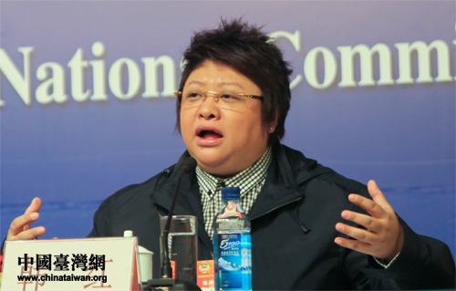 3月10日上午,“全国政协委员谈文化建设”记者会在北京梅地亚两会新闻中心举行。图为:韩红委员回答记者提问。(中国台湾网 陈佳慧 摄)