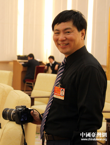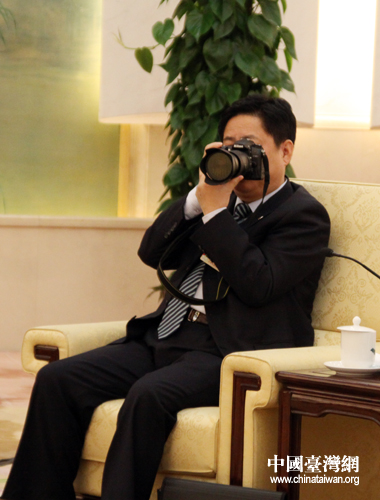 何大欣代表将镜头瞄准记者们的“长枪短炮”。
