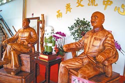 台业者将毛泽东、蒋介石的雕像放到一起,吸引了大批本土、大陆游客。图片来源:台湾《中国时报》