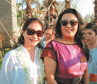 徐妈妈(左)、张兰亲家相见欢。图片来源:台湾《联合报》