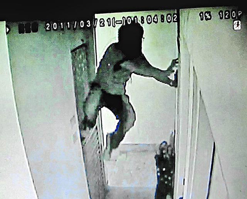 监视器拍下徐文彦爬进前女友住处,并在墙上留下辱骂字眼。图片来源:台湾媒体
