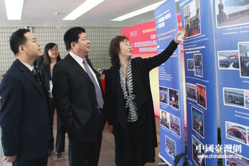 国务院台办主任助理龙明彪(中)在主办方中国台湾网总编辑刘晓辉(右)陪同下,了解大赛举办情况。(中国台湾网 王伟 摄)