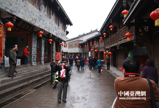 今天重建的水磨镇老人街由仿古建筑构成,已成为旅游胜地。(中国台湾网 芜同 摄)