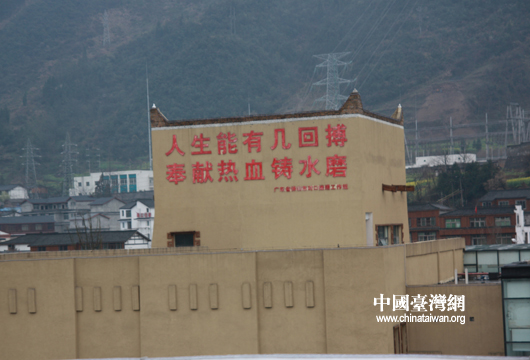 水磨镇是由广东佛山市对口支援重建的,这是援建者留下的誓言。(中国台湾网 芜同 摄)