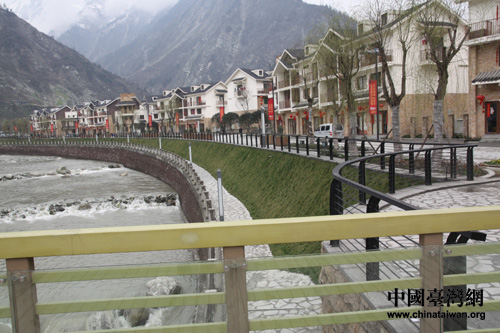 在废墟上新建的映秀镇背山依水,风光秀丽(中国台湾网 芜同 摄)