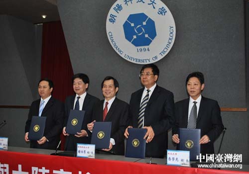 西北大学、西安理工大学、陕西理工学院、延安大学与朝阳科技大学签署交流合作协议。 (陕西省台办 赵有奇 摄 )