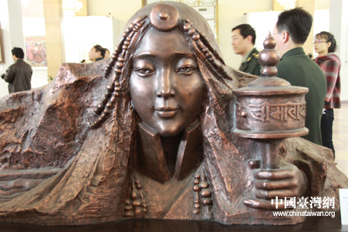 “4·14”玉树地震一周年美术、书法、摄影展作品《祈福》。中国台湾网 冯江 摄